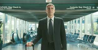 In many ways, he’s the right man for the job. We come to understand that he really has no ties to anyone or anywhere—that in lieu of grounding commitments, he prides himself on things like being a savvy traveler who travels light (which is, of course, a metaphor) and an accruer of airline miles—and this is more or less what gets him through the day.